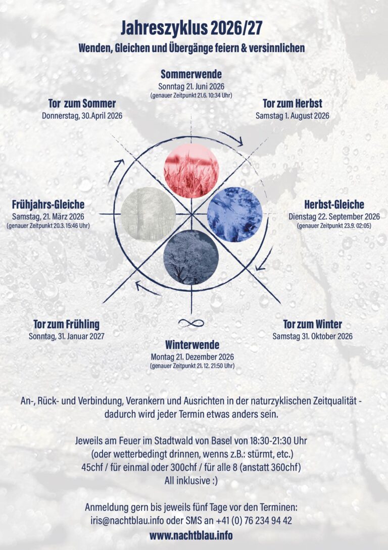 An-, Rück- und Verbindung, Verankern und Ausrichten in der naturzyklischen Zeitqualität – dadurch wird jeder Termin etwas anders sein. Ein Teil für den Körper  ist auch immer dabei (Schütteln, Tanzen, Singen, etc).